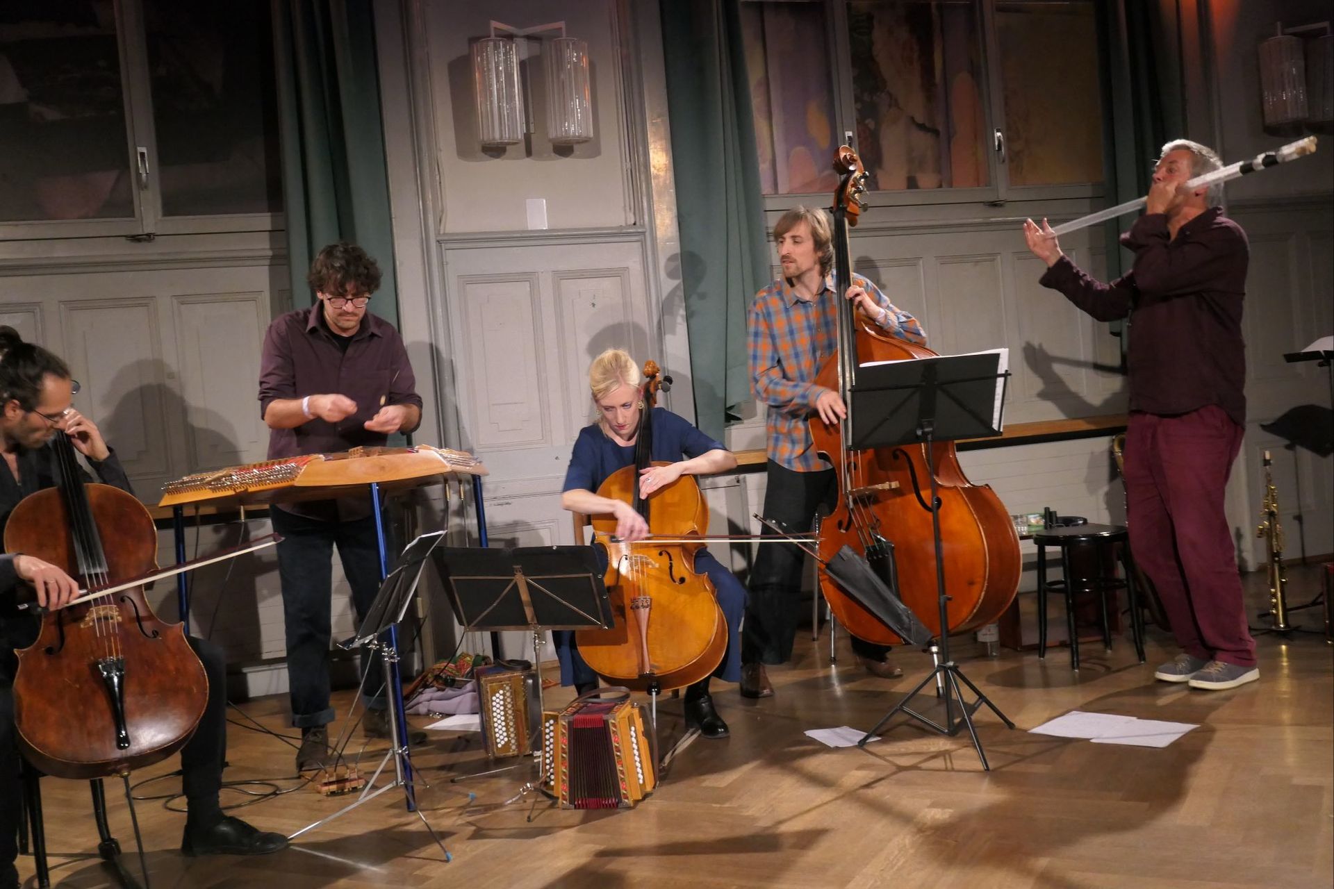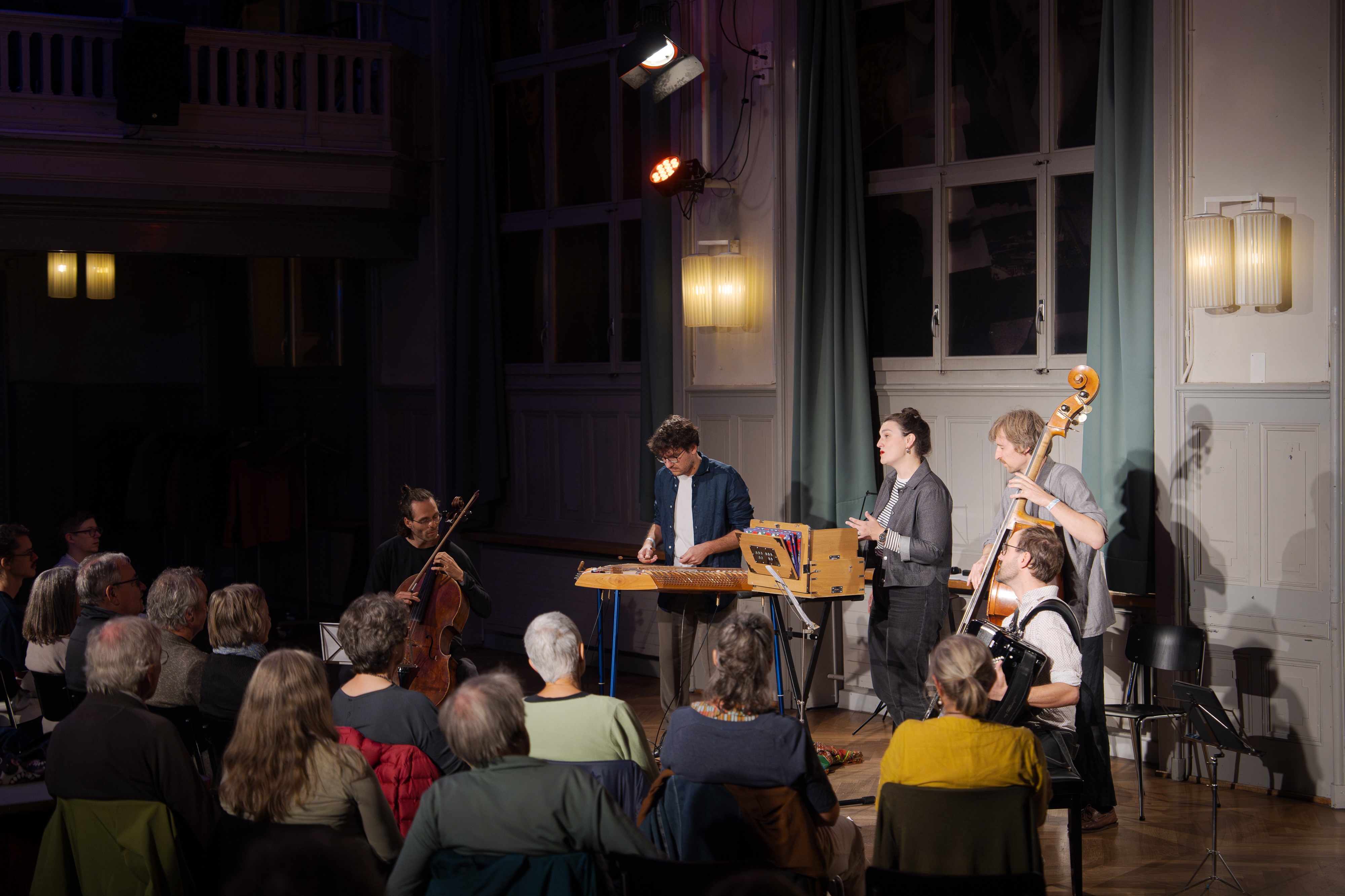 So lädt Viertaktmotor fünf mal im Jahr musikalische Gäste in den PROGR ein um gemeinsam mit ihnen neue Volksmusik zu spielen.